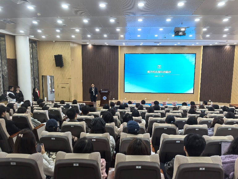 讲座中,何星儒围绕何氏集团三十年发展历程与自身海外求学成长经历,分享了对创新创业的深刻认识,讲述了师从名师获得的科研启发及对职业发展与社会责任的长远规划。同时,他向大家介绍何氏集团创始人回国创业服务家乡的初心,以及集团在科技自立自强方面的担当,激发了大家投入医疗事业、实现人生价值的热情。他围绕“生而光明,天下无盲”这一主题,启示学生当下要明确职业方向,了解掌握未来企业对“复合型人才”的需求导向,以医学为根基,主动融合多学科优势,把握时代发展机遇,建立慈善眼科医疗体系,实现让更多人重获光明的愿景。